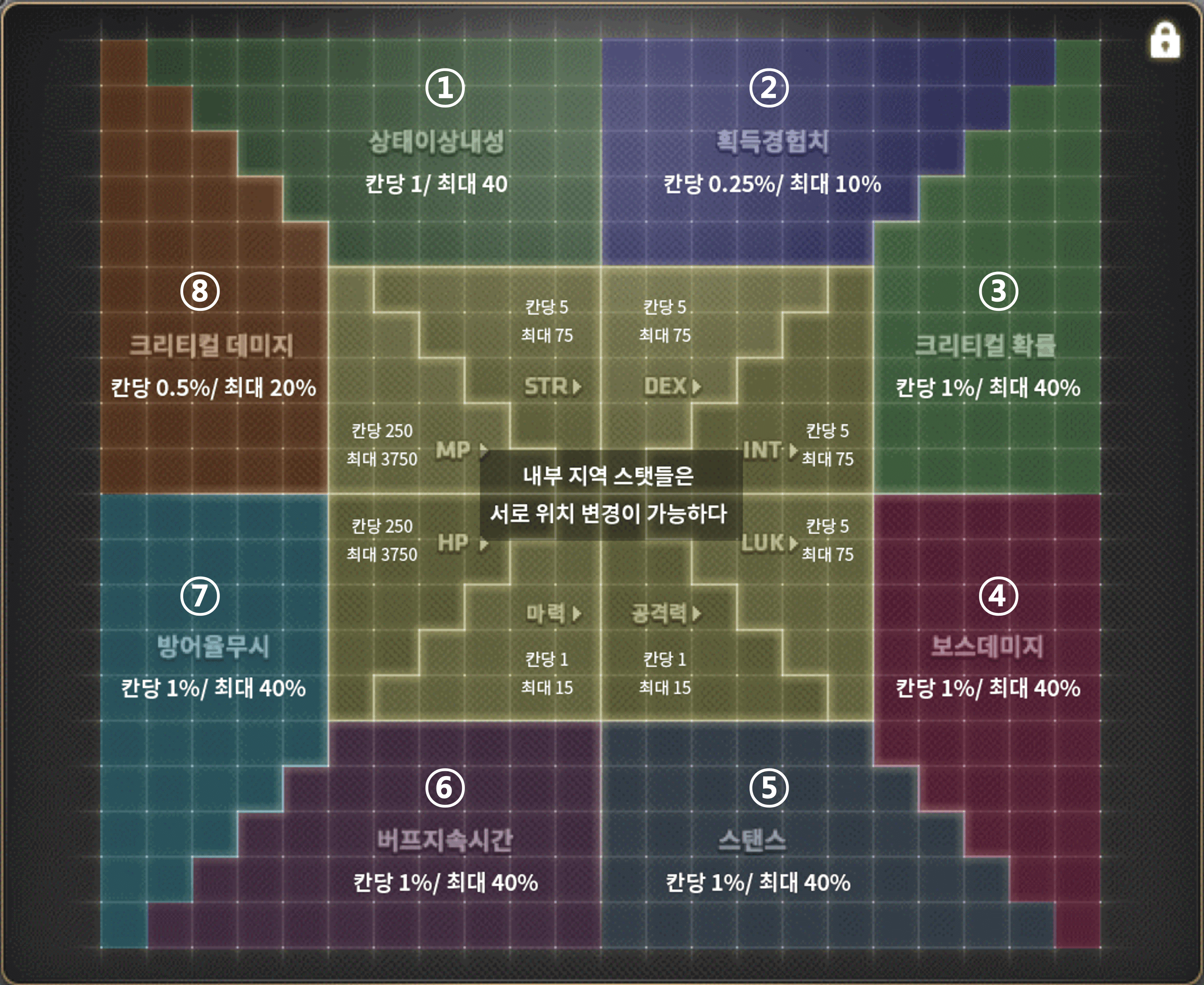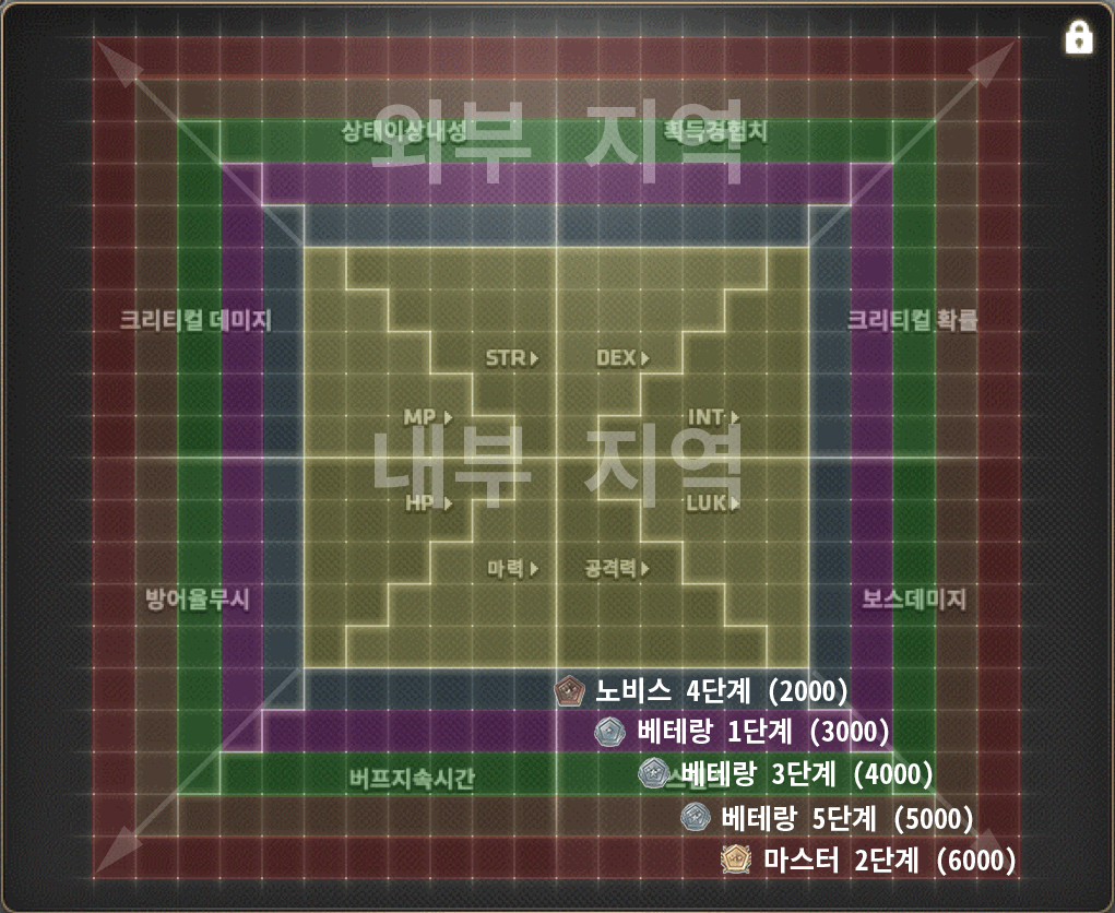 | 2티어 (STR, DEX, LUK, INT 중 본캐에 맞는 스탯 육성) |