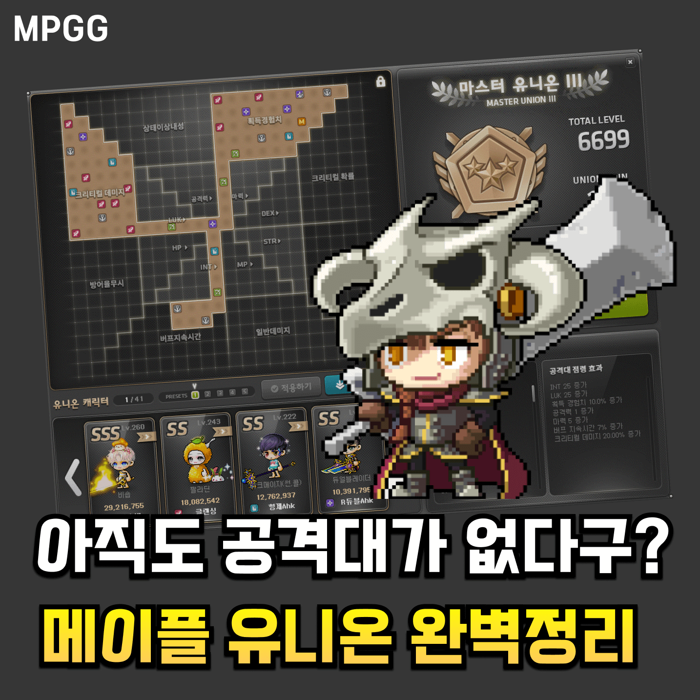 메이플스토리 유니온에 대해 많은 곳에서 이미 다루고 있는데, 최신버전으로 깔끔하게 정리했습니다.
