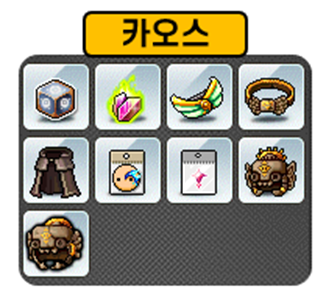 | 칼로스 | ![]() 남겨진 칼로스의 의지, 검은 환생의 불꽃, 영원한 환생의 불꽃, 놀라운 긍정의 혼돈 주문서 60%, 수상한 에디셔널 큐브, 백옥의 보스 반지 상자 (최상급), 솔 에르다의 기운, 니키로이드, 파멸의 징표, 남겨진 칼로스의 의지 조각 |