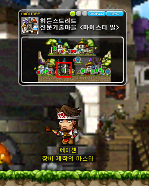 먼저 에이센(장비 제작의 마스터)를 통해 제작 기술을 배우자.